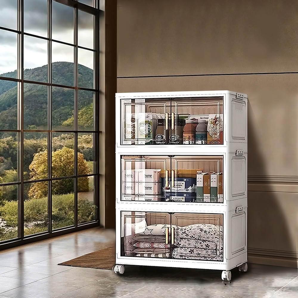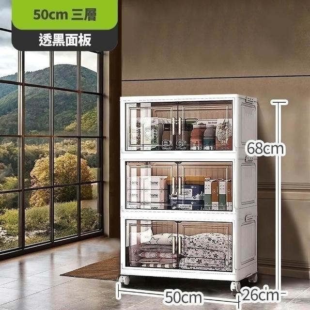 Mr.Box50面寬 典雅摺疊雙開門三層收納櫃附滑輪