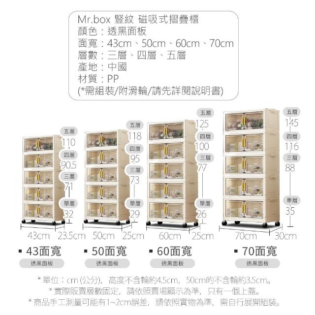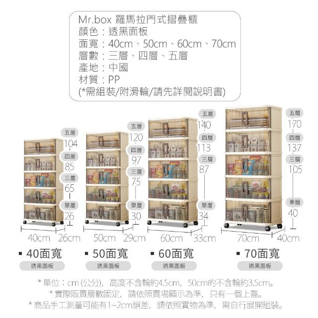 Mr.Box50面寬/60面寬 摺疊四層/五層 收納櫃-附滑輪(拉門式/豎紋款)