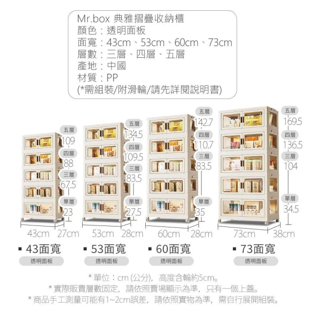 Mr.Box70面寬/73面寬 摺疊雙開門三層收納櫃附滑輪