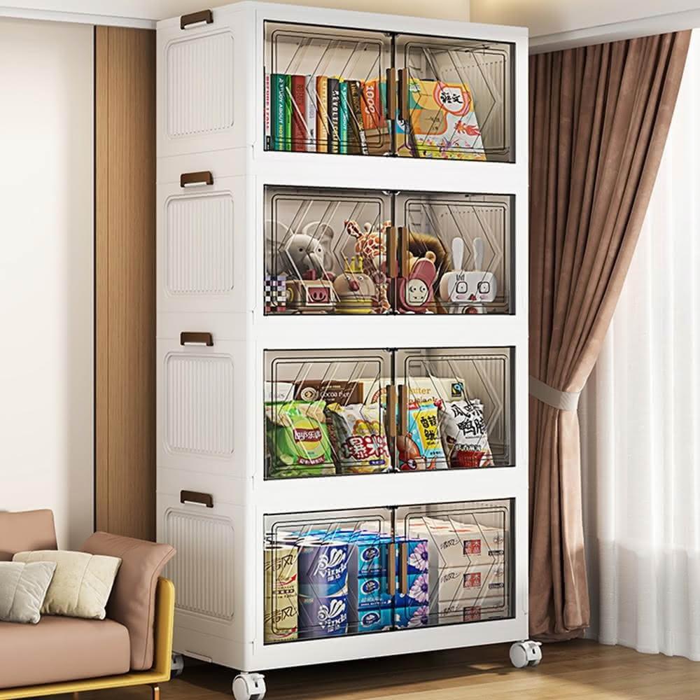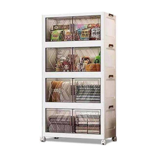 Mr.Box80面寬摺疊雙開門四層收納櫃(附滑輪)