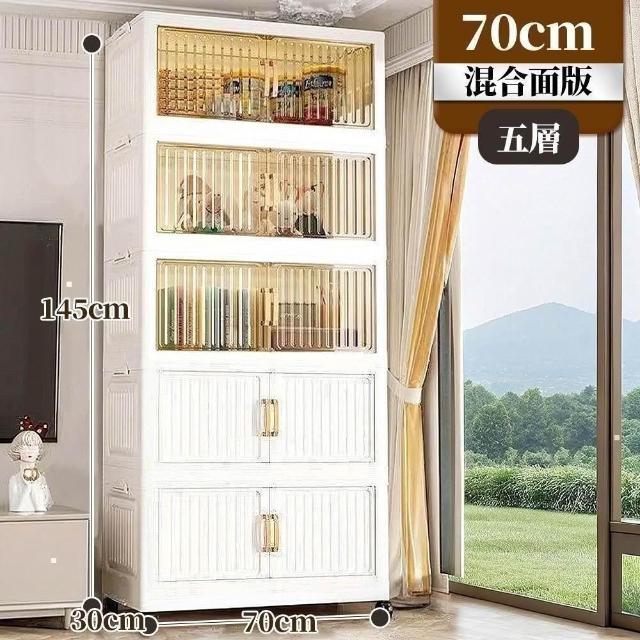 Mr.Box70面寬/80面寬 典雅/豎紋 摺疊雙開門 四層/五層收納櫃-附滑輪