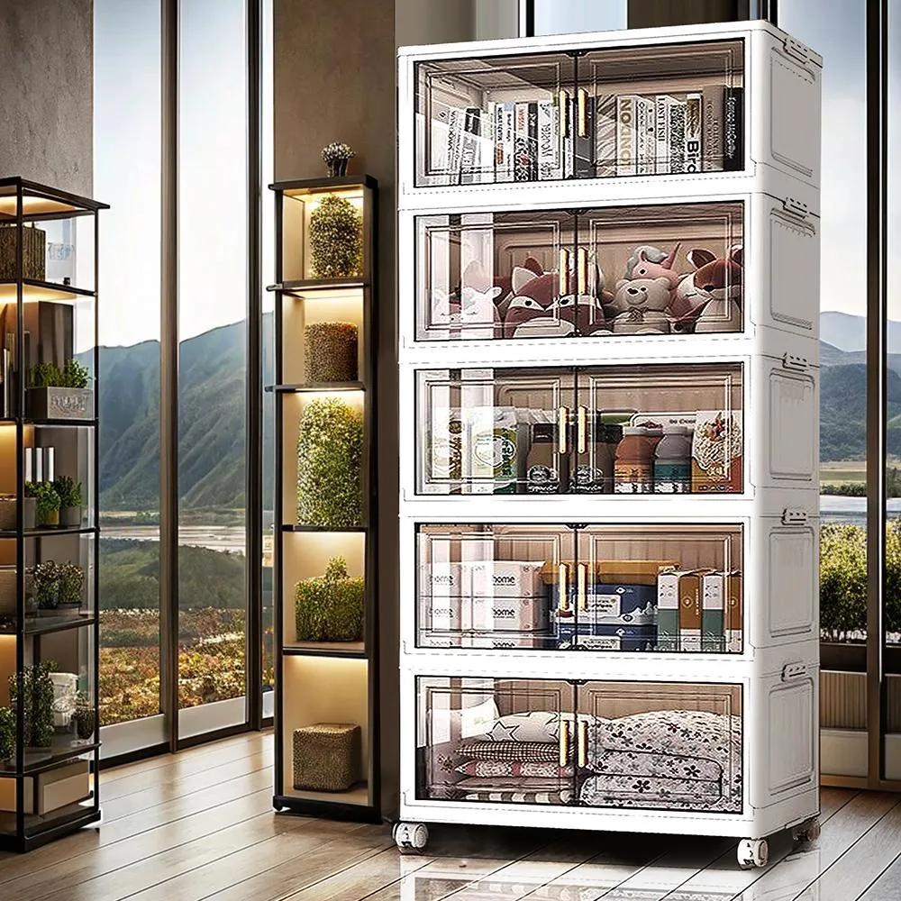 Mr.Box70面寬/80面寬 典雅/豎紋 摺疊雙開門 四層/五層收納櫃-附滑輪