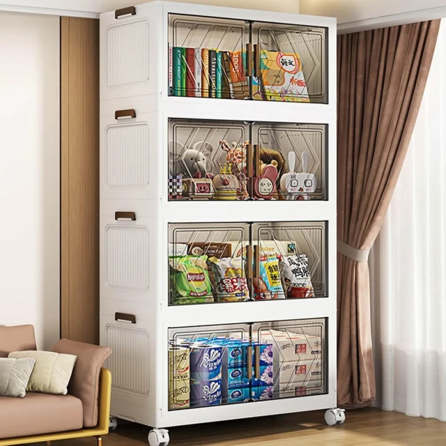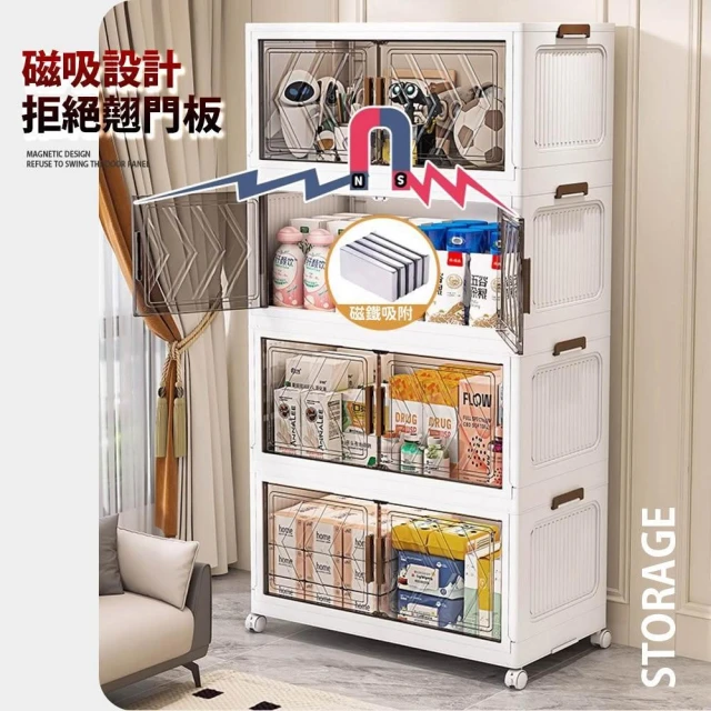 Mr.Box60面寬摺疊雙開門四層收納櫃(附滑輪)