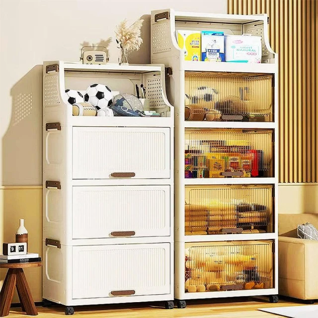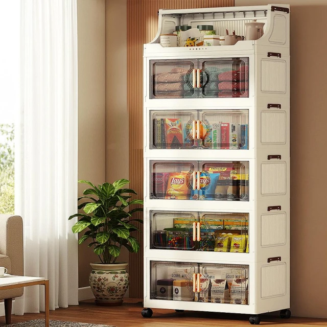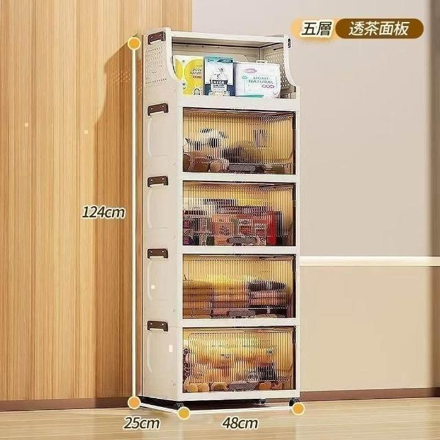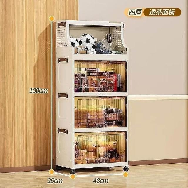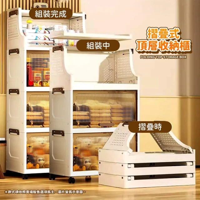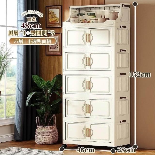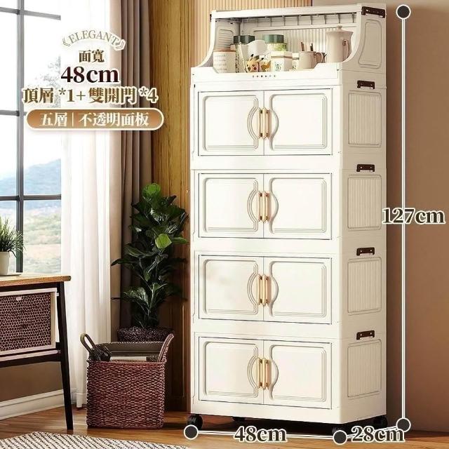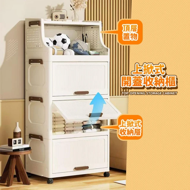 Mr.Box48面寬 摺疊式上掀+頂層置物/雙門款 四層/五層/六層 收納櫃-附輪