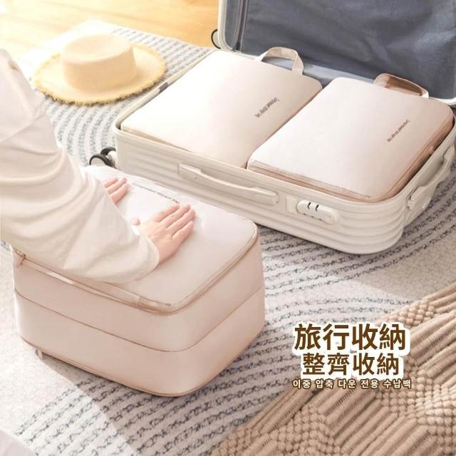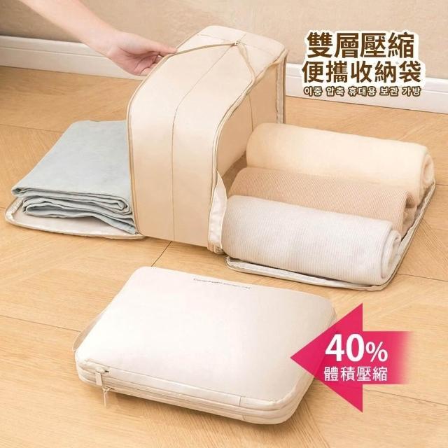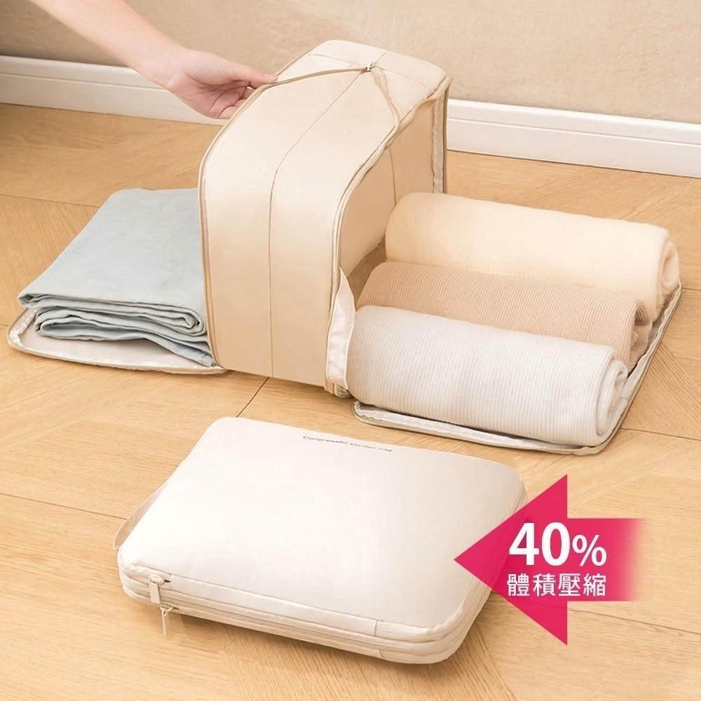 Mr.Box雙層雙拉鍊旅行衣物行李箱壓縮袋-燕麥色(中號/大號/特大號)