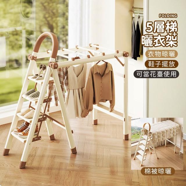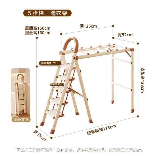 Mr.Box五步曬衣梯-多功能安全扶手加寬加厚室內伸縮防滑兩用折疊曬衣梯-免組裝