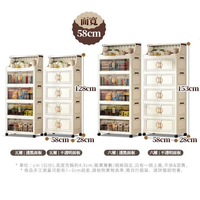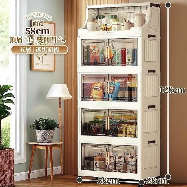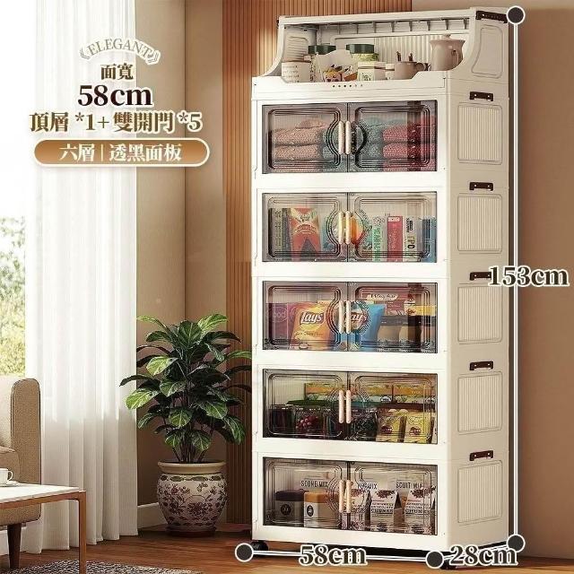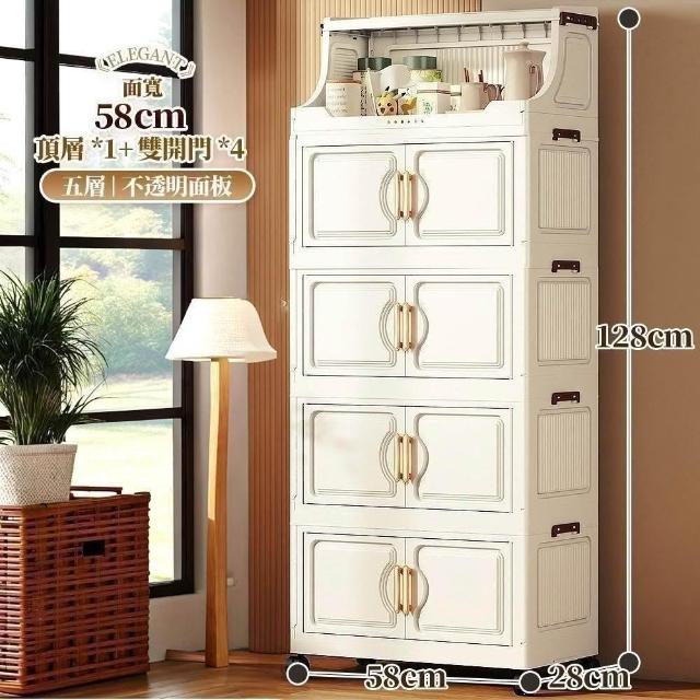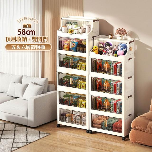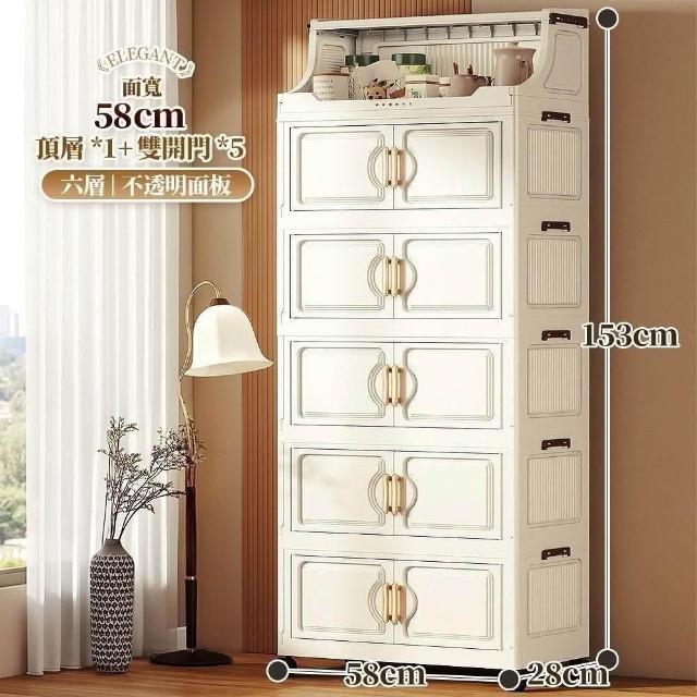 Mr.Box58面寬 摺疊式雙開門+頂層置物 五層/六層 收納櫃-附輪