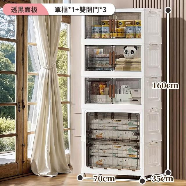 Mr.Box70面寬/80面寬/58面寬 典雅/豎紋 摺疊雙開門 五層/三層收納櫃/收納箱-附滑輪