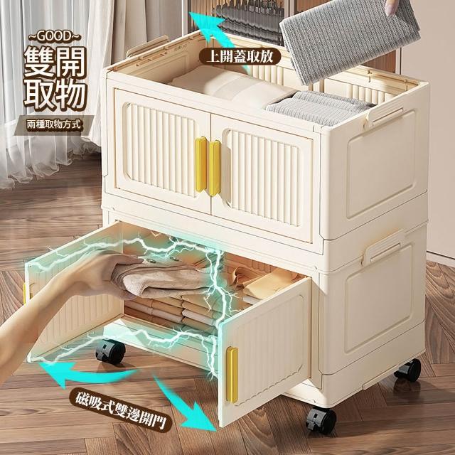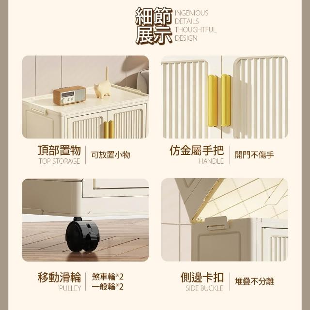 Mr.Box70面寬/80面寬 典雅/豎紋 摺疊雙開門 五層/三層收納櫃-附滑輪