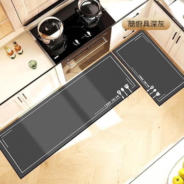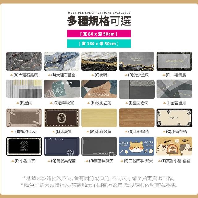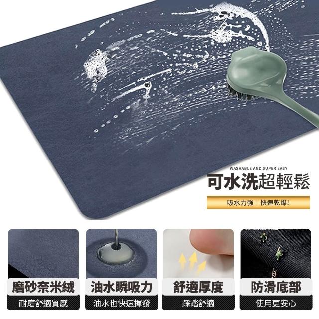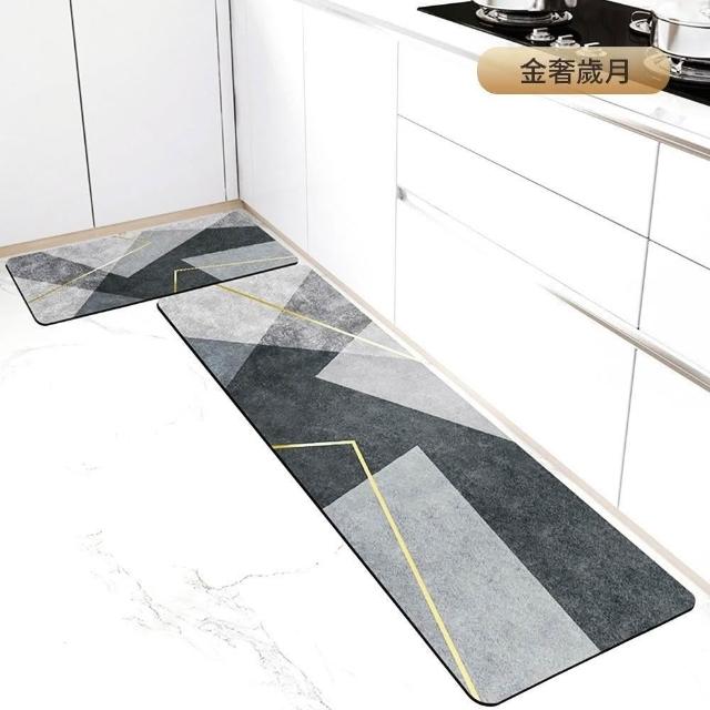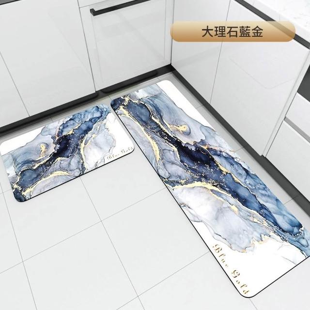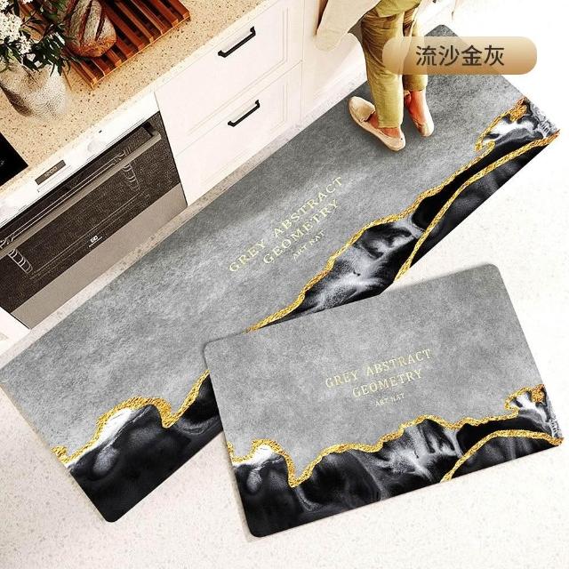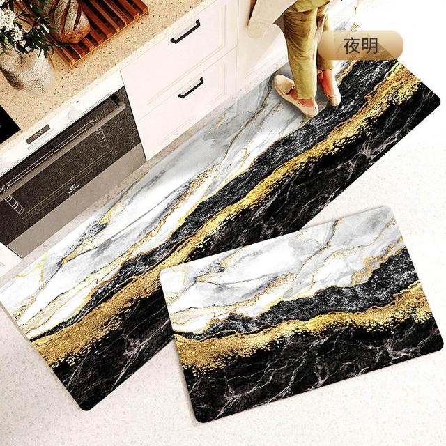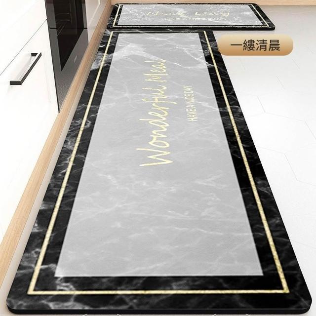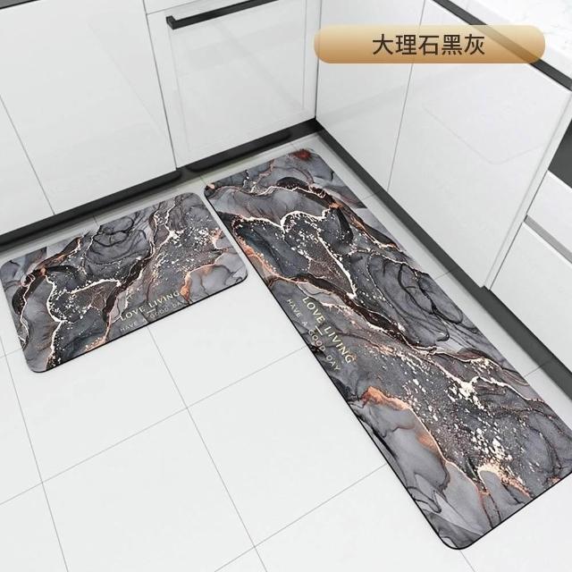 Mr.Box買1送1 奈米絨面軟式矽藻土吸水防油防滑廚房地墊(浴室/踏墊/速乾/地毯)-大理石黑灰 160x50cm+80x50cm
