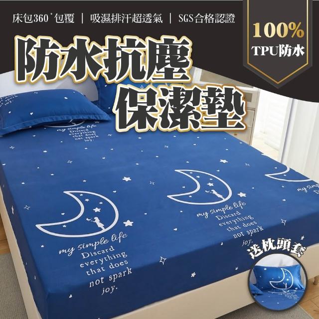 桑桑選品 防水隔尿圖案床包式保潔墊 雙人加大180x200cm床包式保潔墊 防水保潔墊 可機洗隔尿墊 防水床包