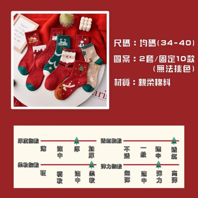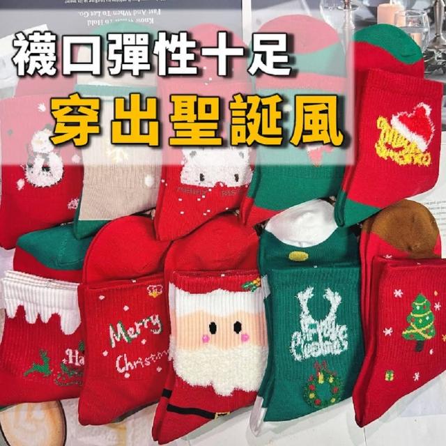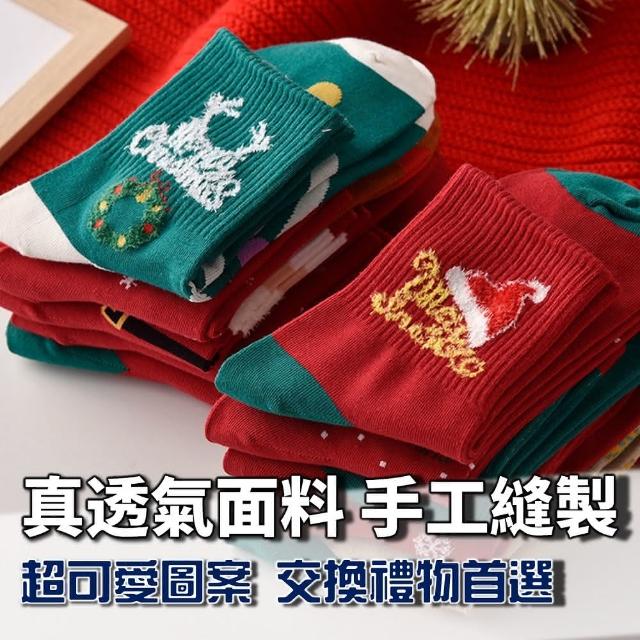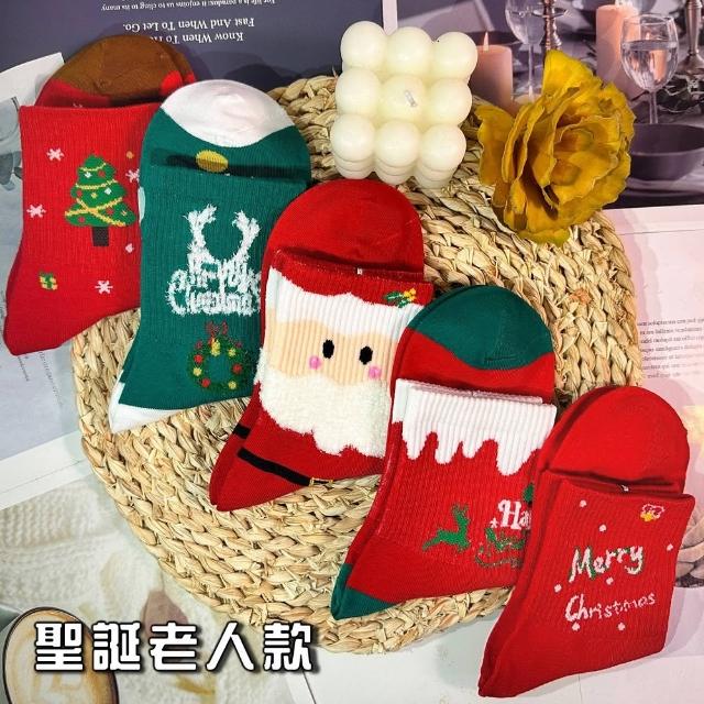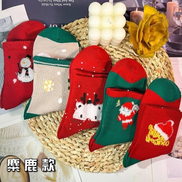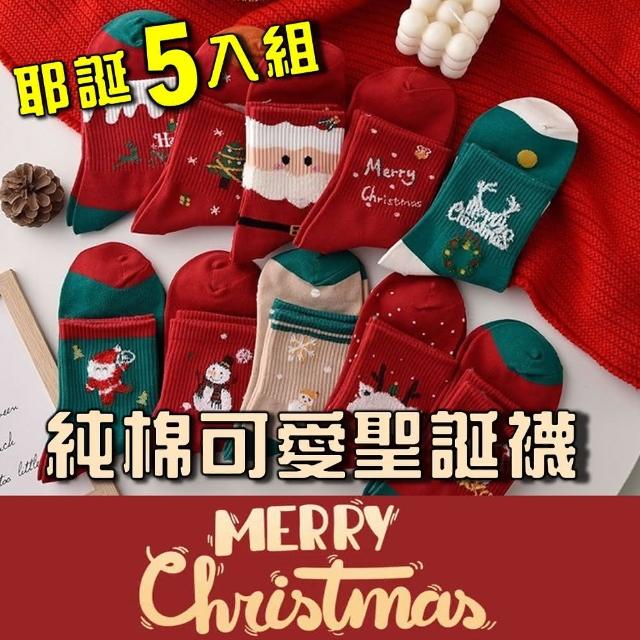 桑桑選品 純棉聖誕襪 中筒襪-5入組 保暖襪 聖誕老人襪 聖誕禮物交換禮物 聖誕節禮物 禮物