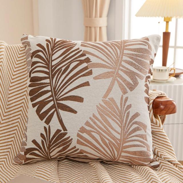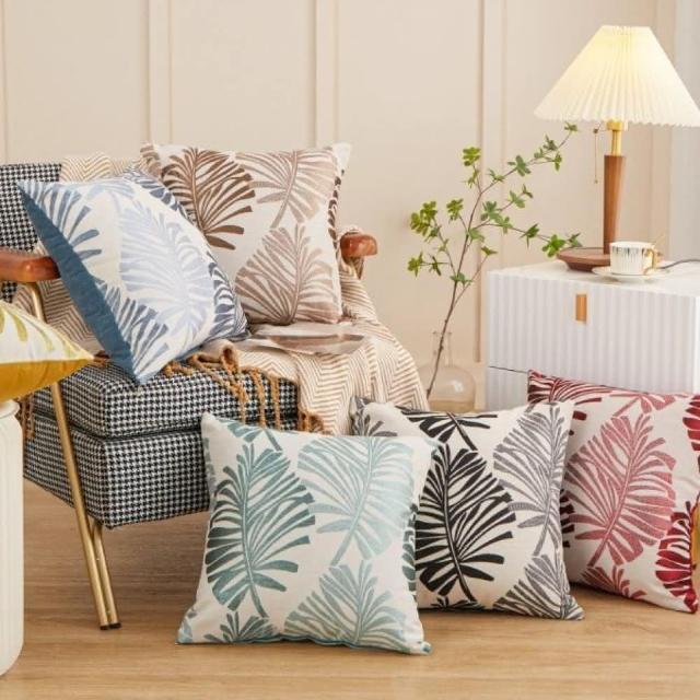 桑桑選品 繽紛彩葉緹花沙發抱枕含枕芯-45*45cm 四色可選沙發枕 沙發靠枕 抱枕 靠枕 靠墊