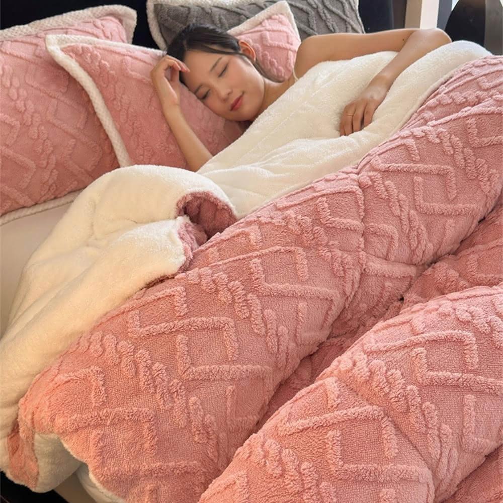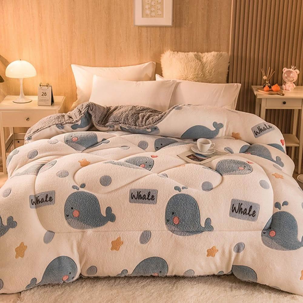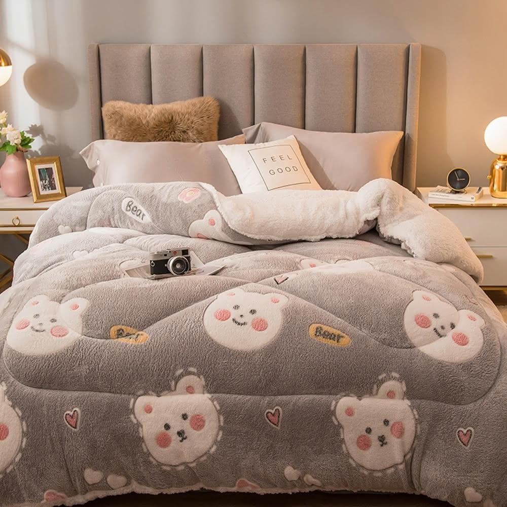 桑桑選品 可愛圖案/素色編織 加厚羊羔絨暖暖被2.4KG -多款任選 (冬被 雙人被 棉被 塔芙絨 雪花絨)