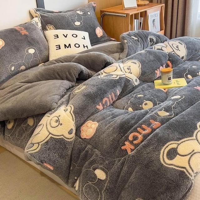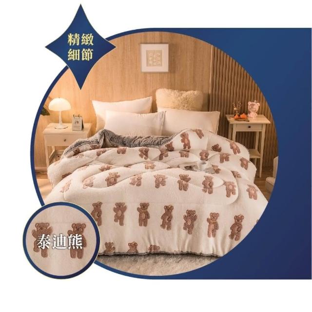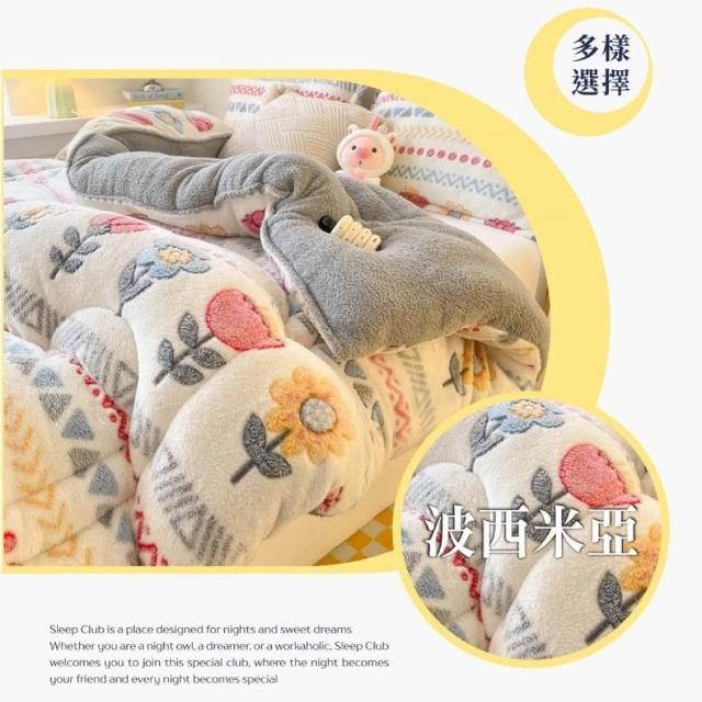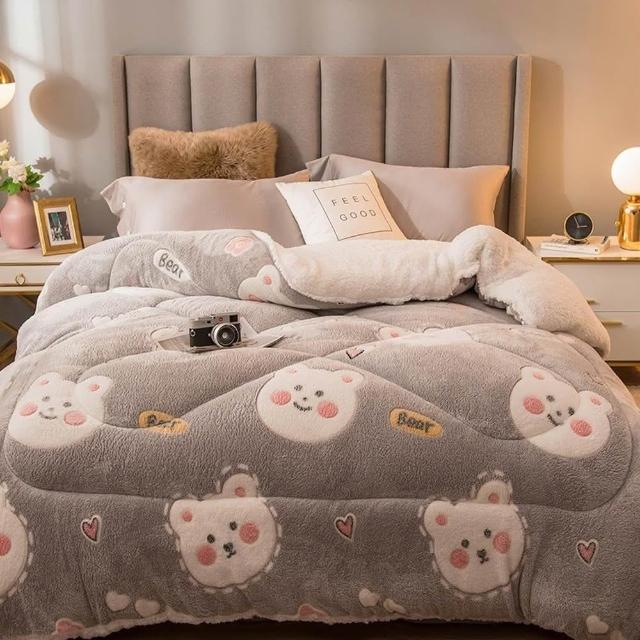 桑桑選品 雪花絨×羊羔絨 可愛圖案雙面加厚暖暖被2.4KG 冬被 雙人被 棉被