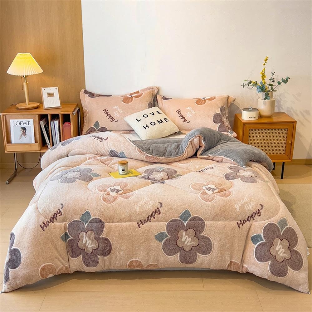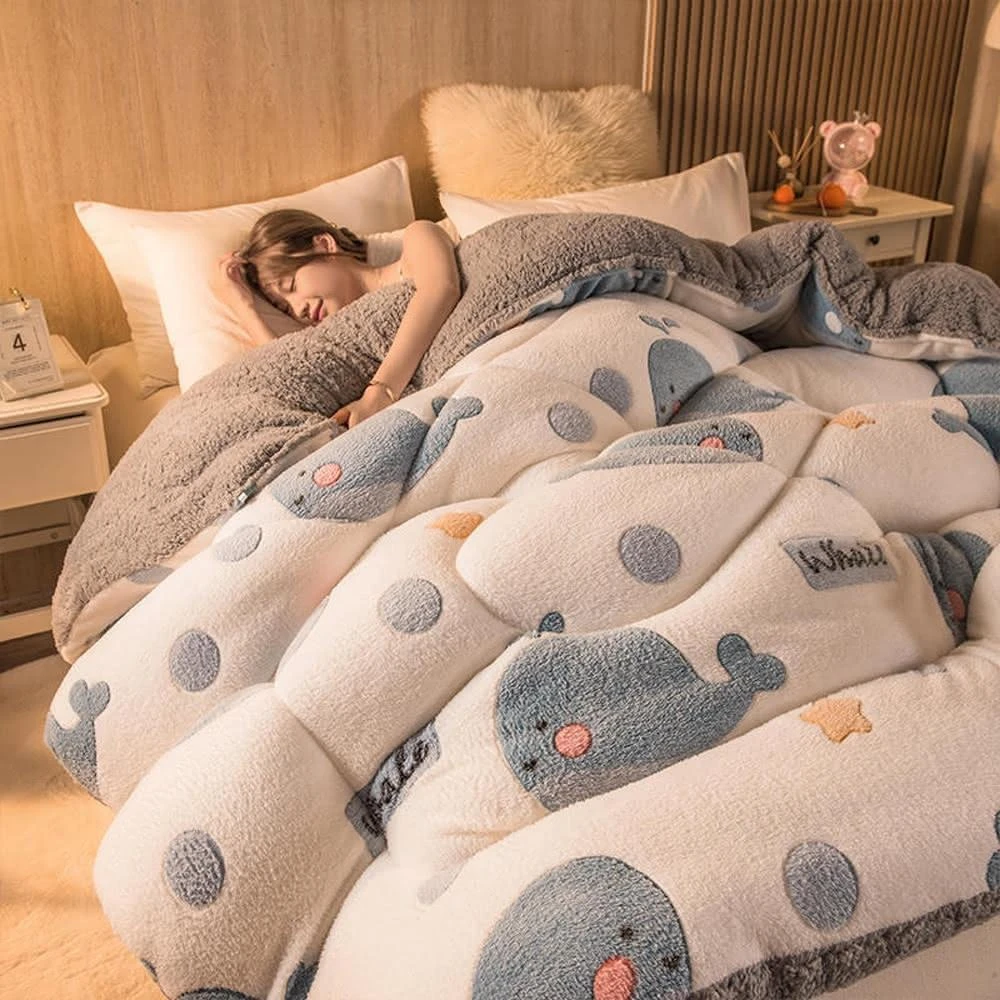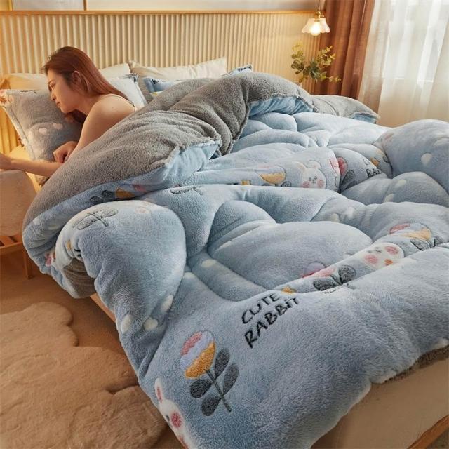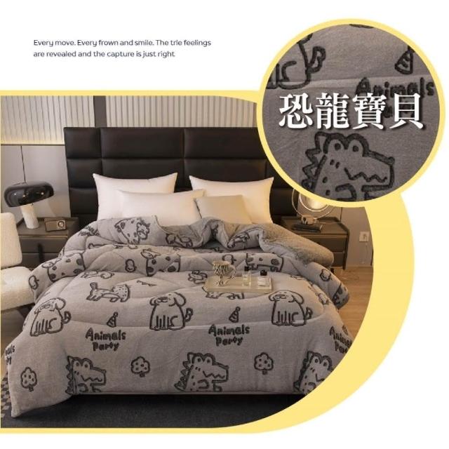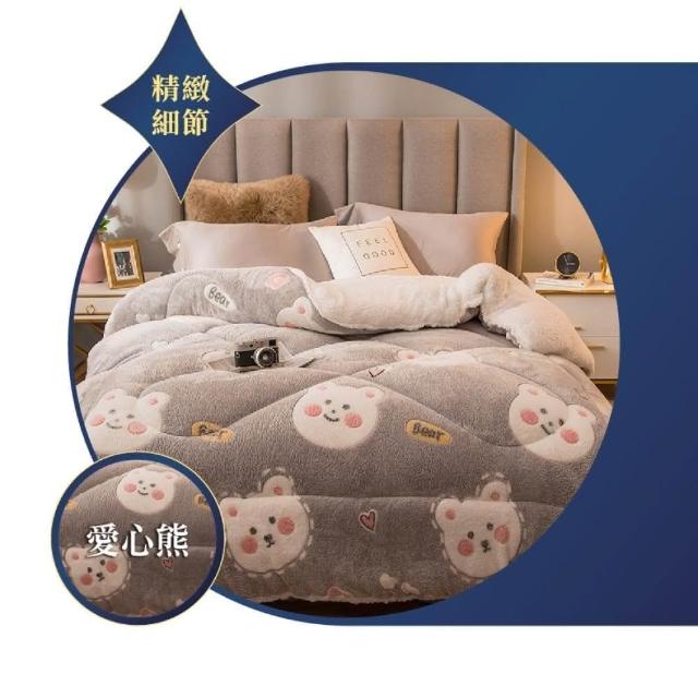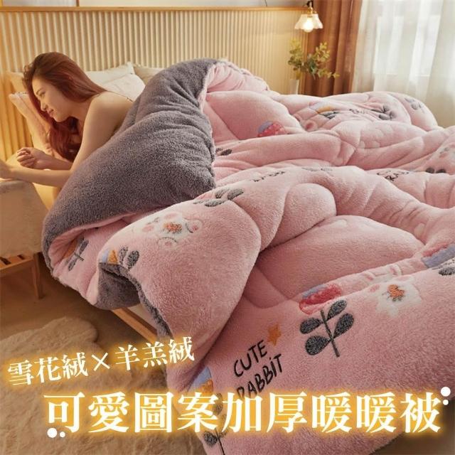 桑桑選品 雪花絨×羊羔絨 可愛圖案雙面加厚暖暖被2.4KG 冬被 雙人被 棉被