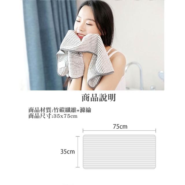 桑桑選品 竹碳纖維抗菌毛巾35x75cm吸水浴巾 毛巾 飯店浴巾 飯店毛巾
