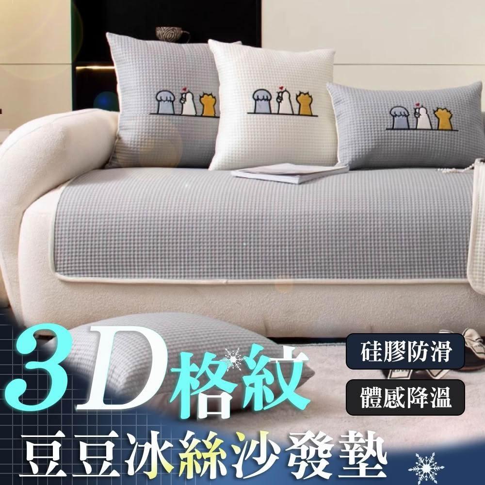 桑桑選品 3D格紋豆豆冰絲沙發墊-單人 ( 沙發套 沙發坐墊 椅墊 沙發罩)