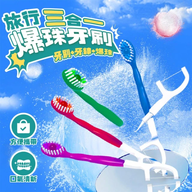 桑桑選品 隨身三合一迷你爆珠牙刷 牙線 牙間刷 拋棄式牙刷 一次性牙刷 旅行牙刷