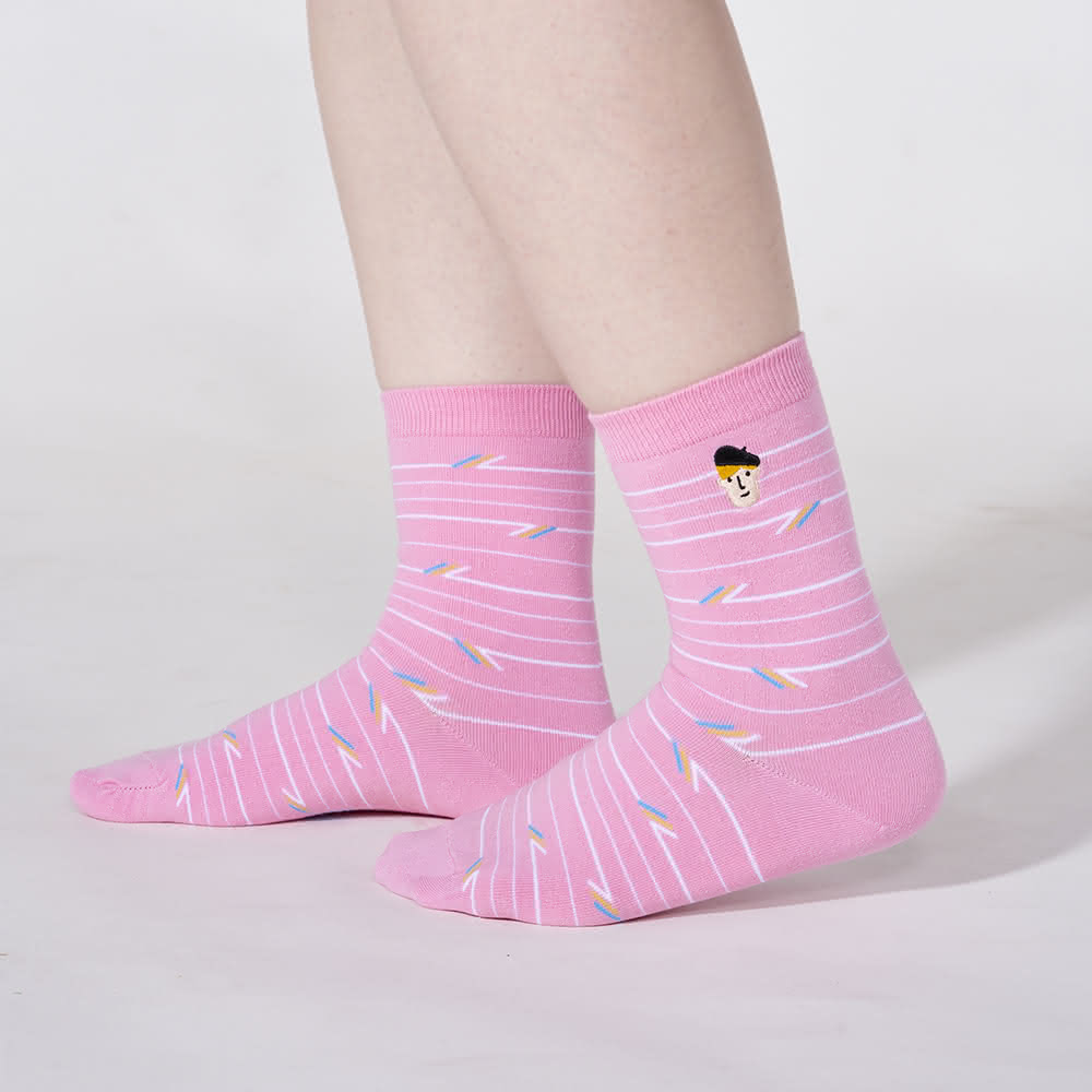 needo socks小畫家 3:4 粉(刺繡棉襪/分左右腳的襪子/台灣設計製造/特殊舒適腳尖)