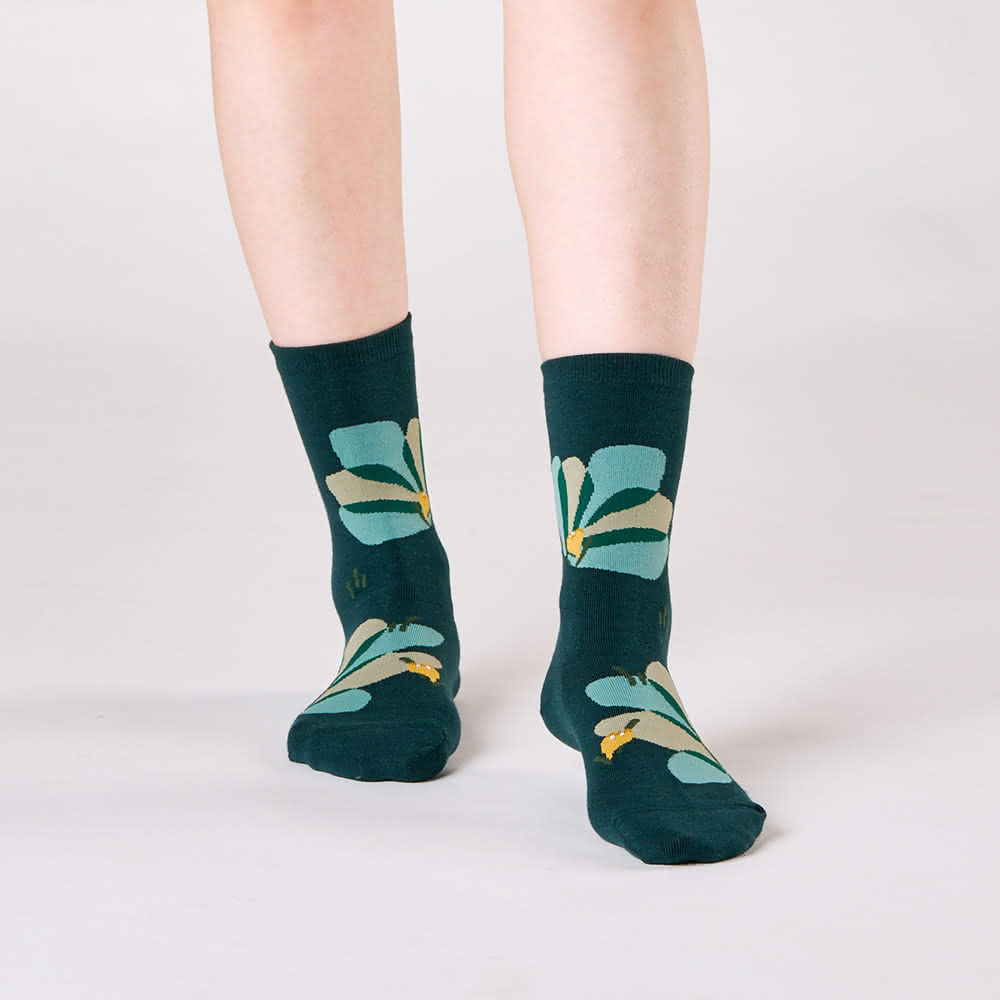 needo socks番紅花 1:1 綠(棉襪/分左右腳的襪子/台灣設計製造/特殊舒適腳尖)