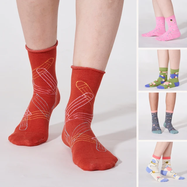 needo socks五雙組/多色隨機 小畫家系列 分左右腳 高品質 舒適綿襪(女棉襪/台灣設計製造/特殊舒適腳尖)