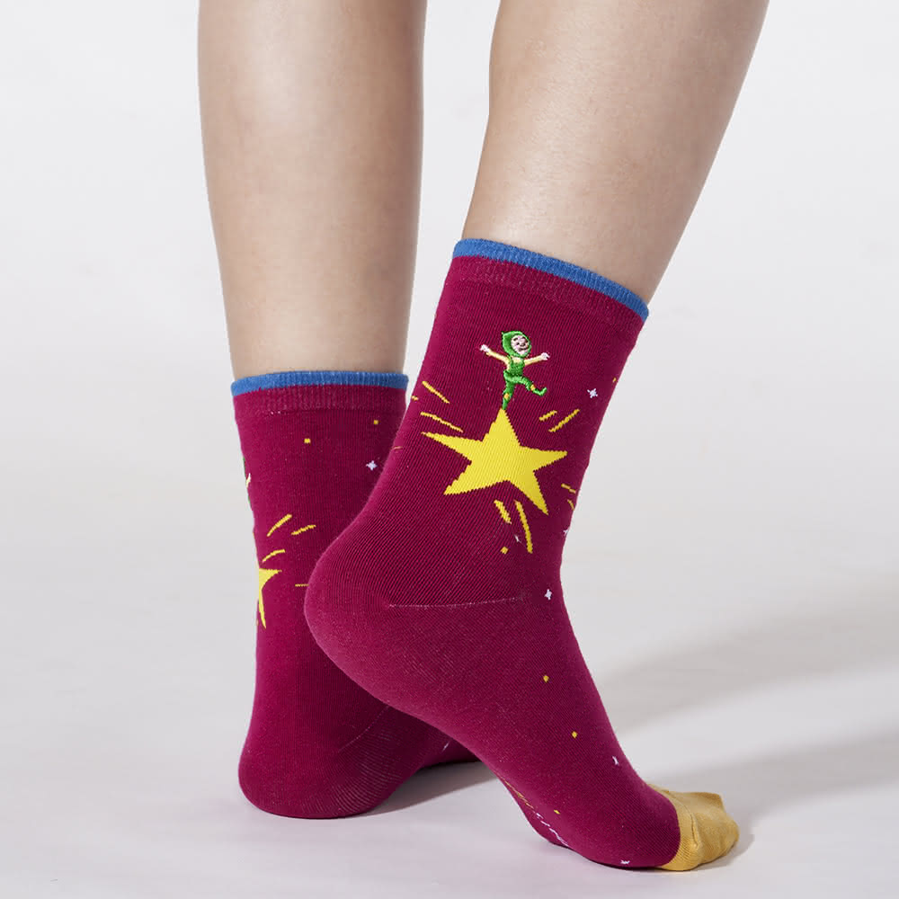 needo socks大童襪 / 幾米 忘記親一下 。許願星星 3:4(大童尺寸/刺繡棉襪/分左右腳的襪子/台灣設計製造)