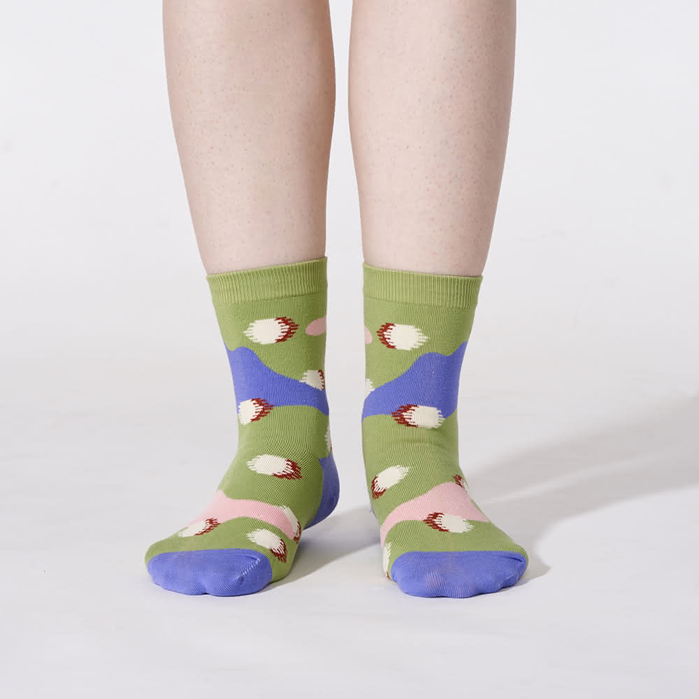 needo socks調色盤 3:4 綠(棉襪/分左右腳的襪子/台灣設計製造/特殊舒適腳尖)