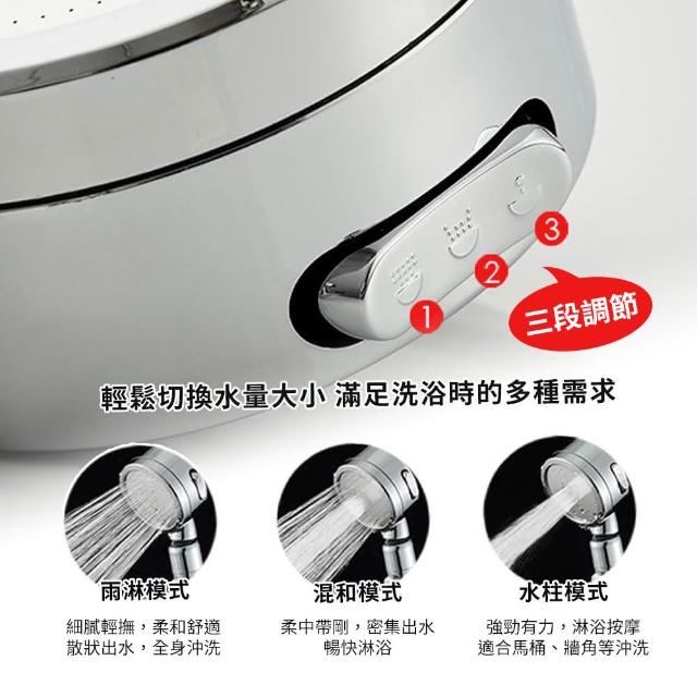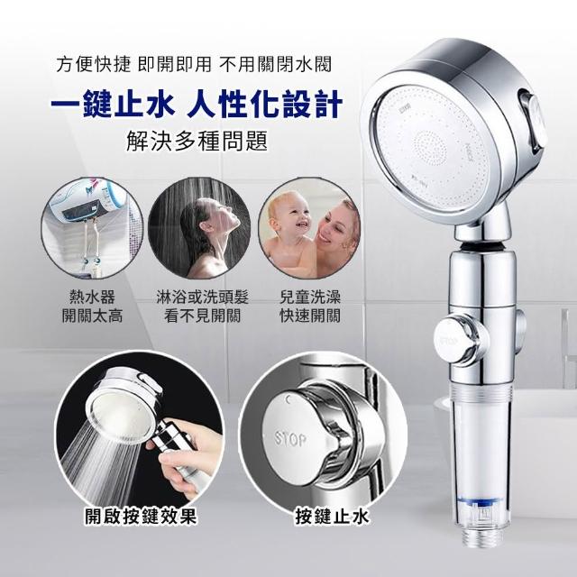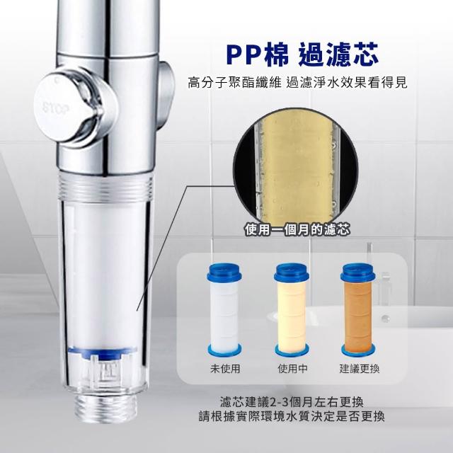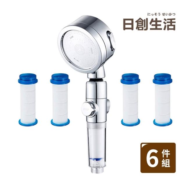 日創生活一鍵止水三段調節增壓過濾蓮蓬頭含濾芯-6件組蓮蓬頭x1+專用濾芯x5