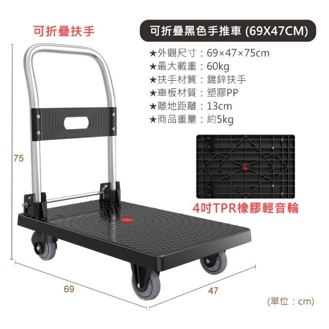 日創生活可折疊輕便手推車69×47手拉車 折疊車 四輪推車