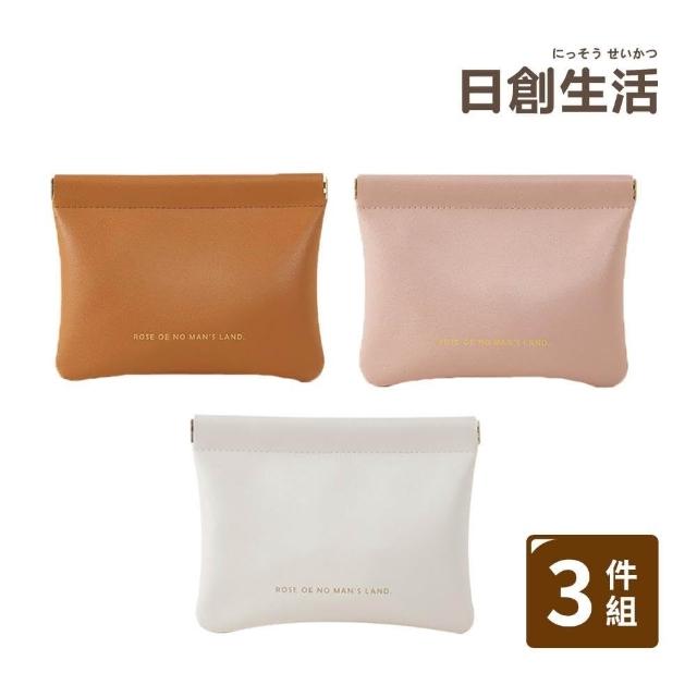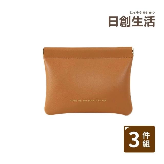日創生活大款3件組-高質感耳機充電線收納袋小物收納包 彈片收納袋 皮革零錢包 隨身包