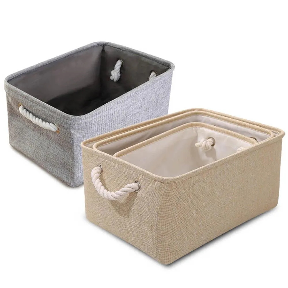 日創生活棉麻收納籃 灰色/米色 {置物籃 素色棉麻收納籃 衣物收納 收納袋 衣櫥收納 整理箱}