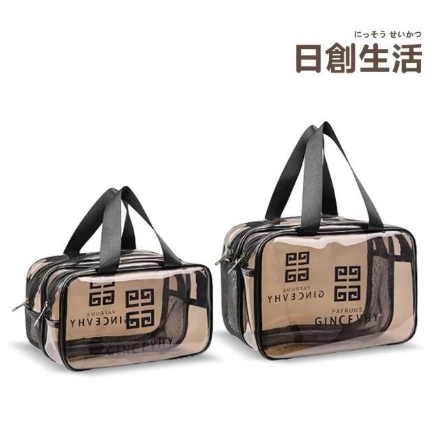 日創生活PVC防水雙開口化妝包 {旅行包 旅行收納 漱整理包 防水旅行袋 半透明化妝包 手提化妝袋}