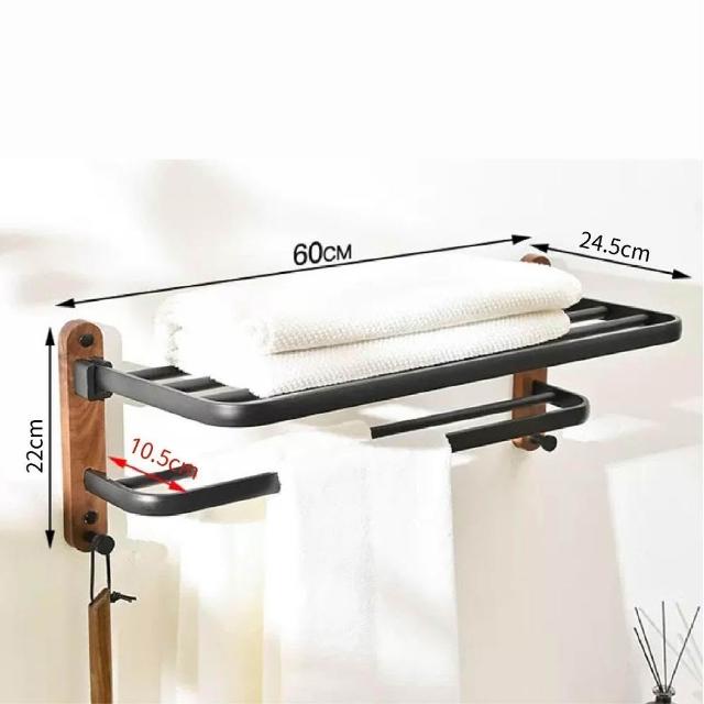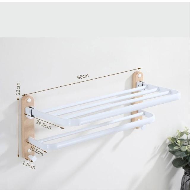 日創生活實木浴室收納架 雙桿毛巾架 {胡桃木 櫸木 浴室免打孔置物架 洗手間浴巾架}