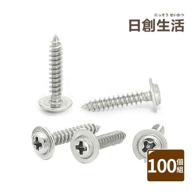 日創生活100顆組 304不鏽鋼十字自攻螺絲 M4 圓頭帶墊片(不鏽鋼螺絲 自攻釘 螺絲釘 十字釘 木螺釘 沉頭螺絲)