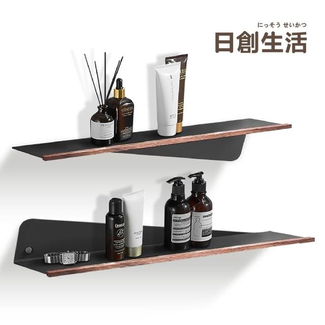 日創生活輕奢浴室太空鋁製置物架 (免釘安裝 可鑽孔 浴室置物架 層架 壁掛層架 胡桃木 牆壁收納架 平面置物架)