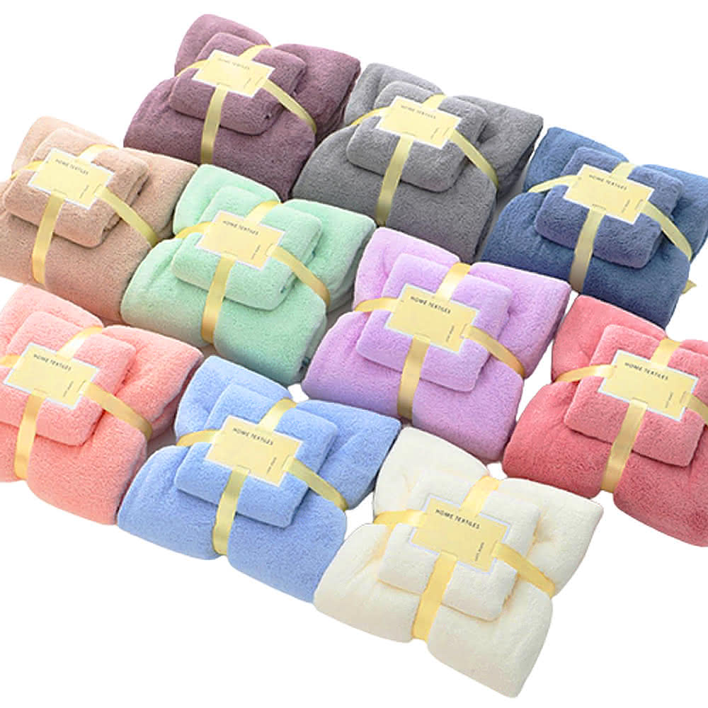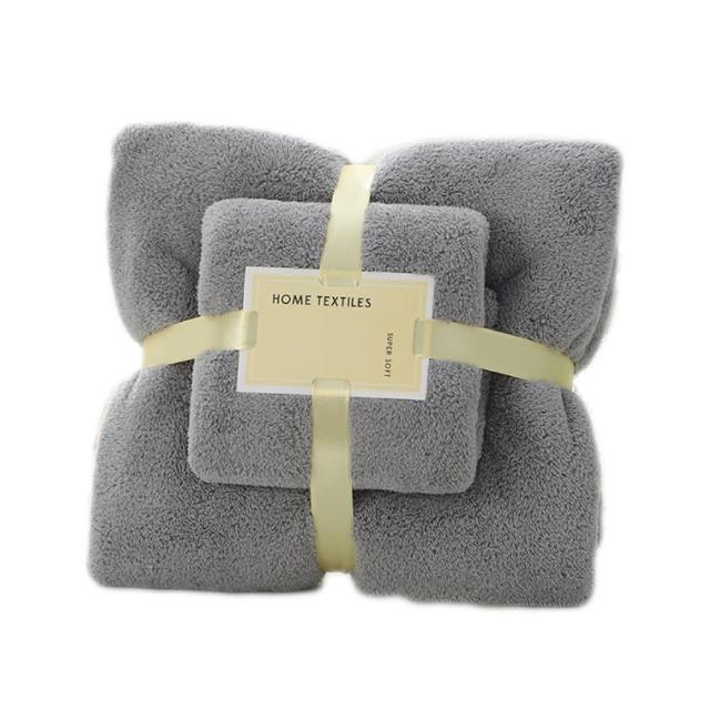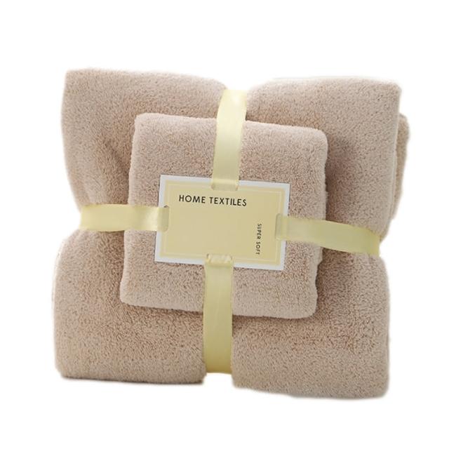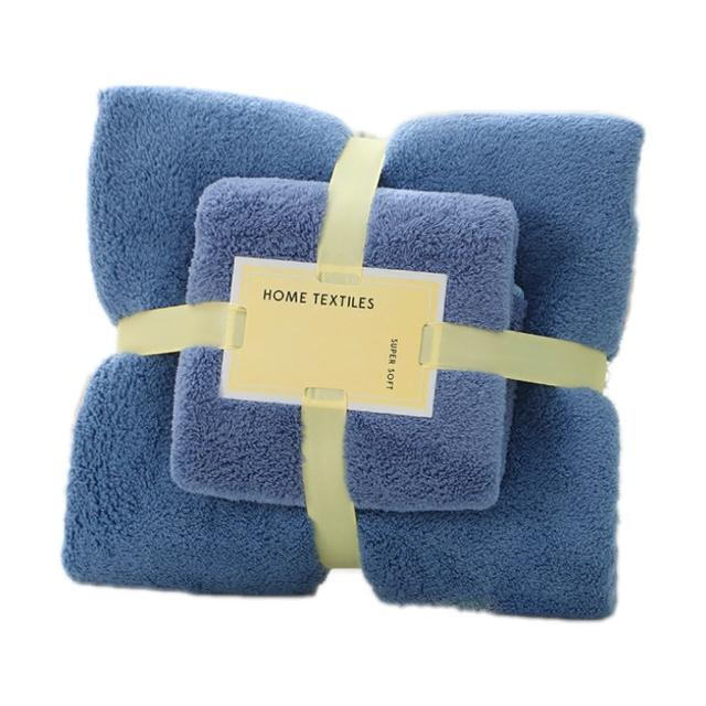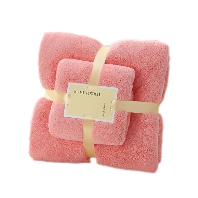 拼創生活韓版袋裝)加厚珊瑚絨毛巾+浴巾組(浴巾毛巾套組 珊瑚絨毯 空調毯 加厚浴巾 加厚毛巾 交換禮物 毛毯