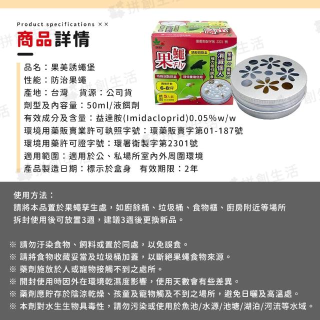 拼創生活奧除果蠅誘殺餌劑盒(MIT品質保證/抓果蠅/除果蠅/蚤蠅/消滅果蠅/果蠅)