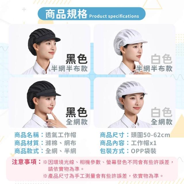 拼創生活透氣工作帽(多款任選;廚師帽/工作帽/無塵帽/帽子/頭巾/網帽/廚房帽/防塵帽/工廠帽/廚帽)