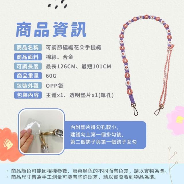 拼創生活可調節編織花朵手機繩(手機掛繩 相機掛繩 手機吊繩 掛繩 斜背 手機鍊 掛脖繩 手機背帶 手機繩)