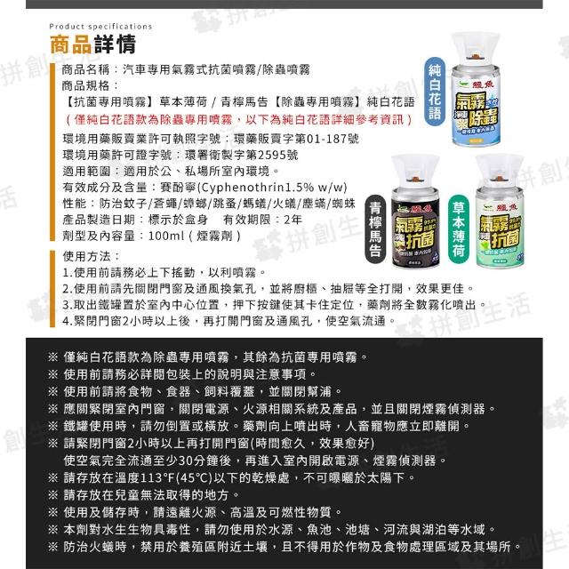 拼創生活鱷魚 車用水性抗菌噴霧/除蟲噴霧100ml(抗菌噴霧/除蟲噴霧/氣霧殺蟲劑/汽車殺菌/抗菌/芳香/車用)