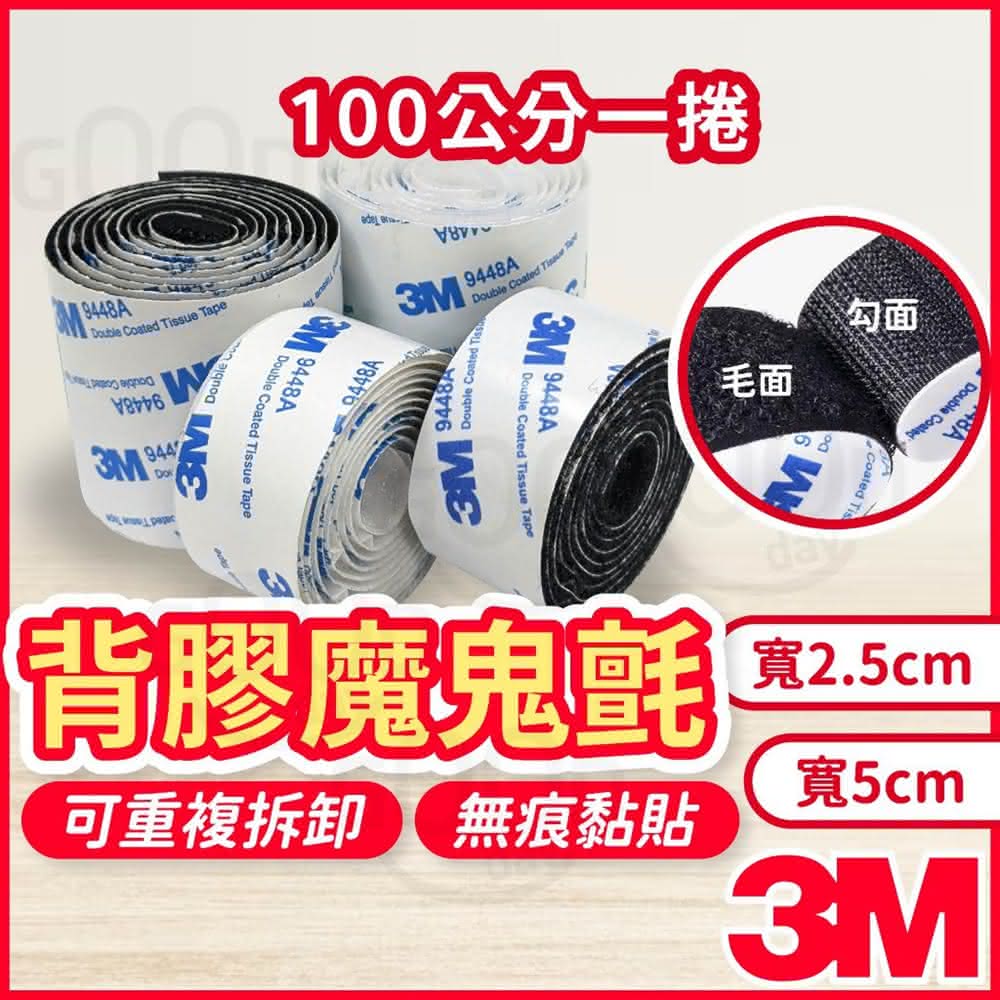 Gooday 3M 背膠魔鬼氈 5公分 整捲 魔術貼 公母扣 魔鬼沾 魔力扣 子母帶 無痕貼 雙面膠 果凍貼 防水雙面膠