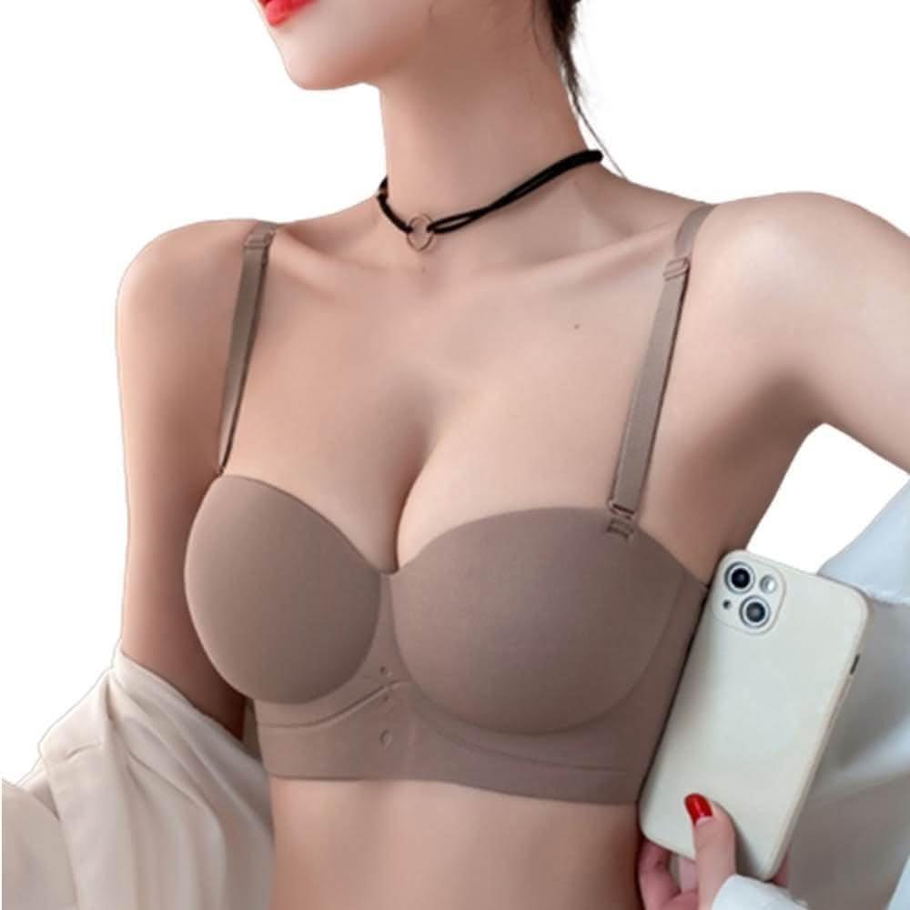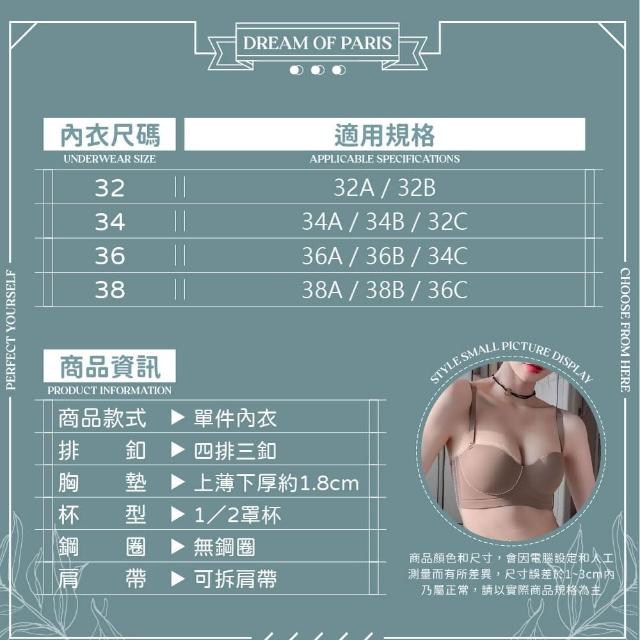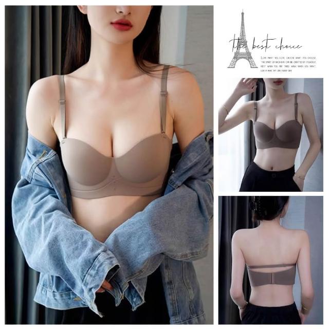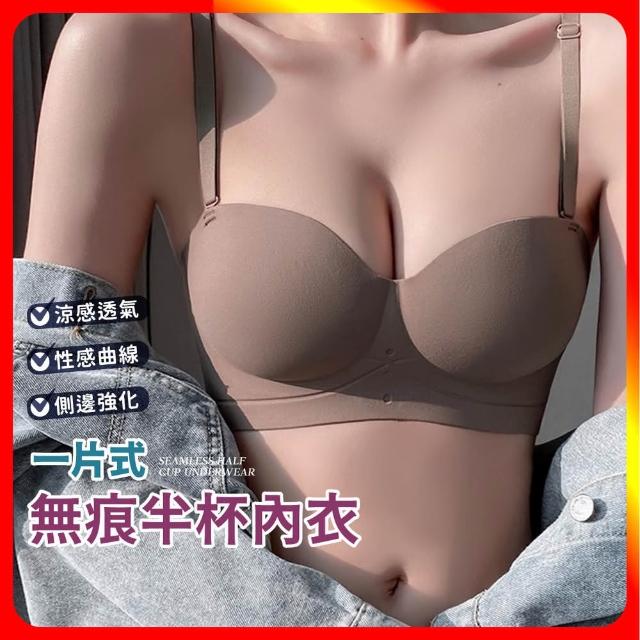 夢巴黎一片式無痕半杯內衣(內衣 無痕內衣 無肩帶內衣 半杯內衣 美背內衣 無鋼圈內衣 女生內衣)