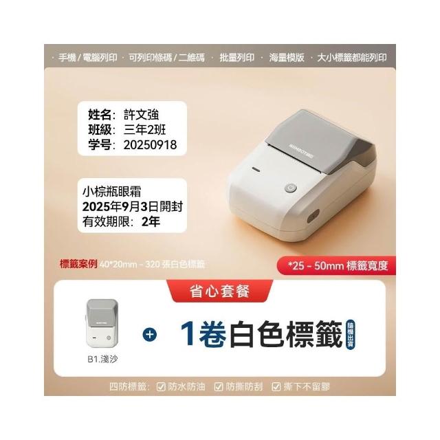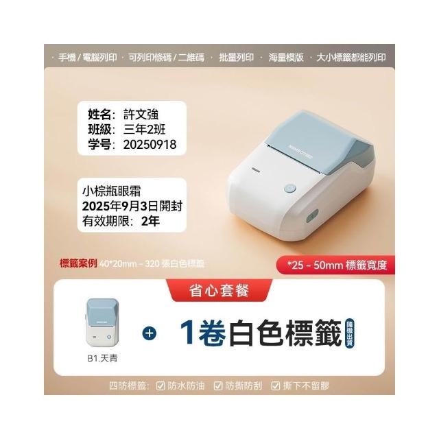 NIIMBOT 精臣《台灣總代理公司貨》B1 B1Pro家用智慧型標籤機 手持便攜迷你自黏貼紙廚房收納防水透明學校學生姓名標籤機