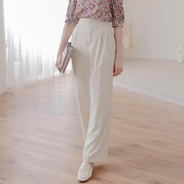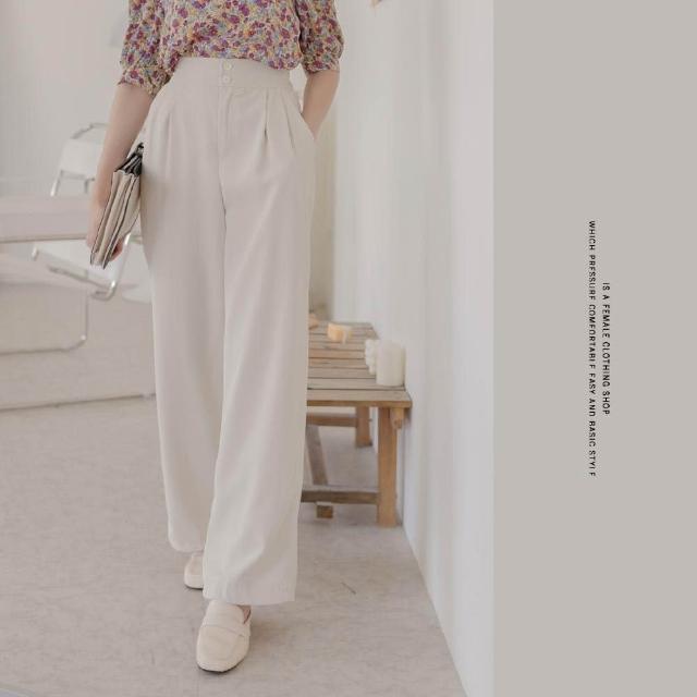 MUMUSHOPMUMU P46982 雙釦 高腰 直筒西裝褲 西裝褲 後腰鬆緊 休閒薄款 質感西裝褲女 高腰垂感 寬鬆 直筒褲 顯瘦