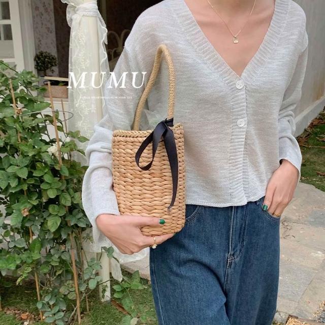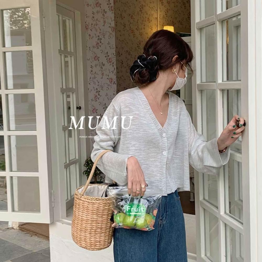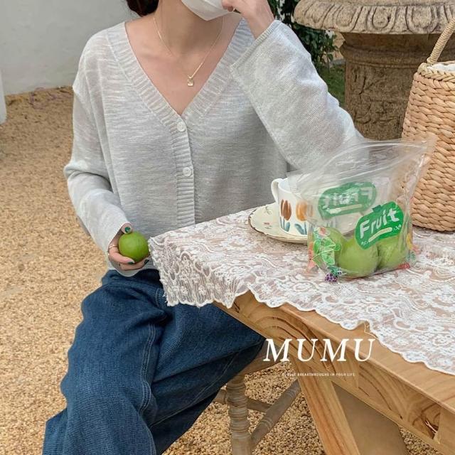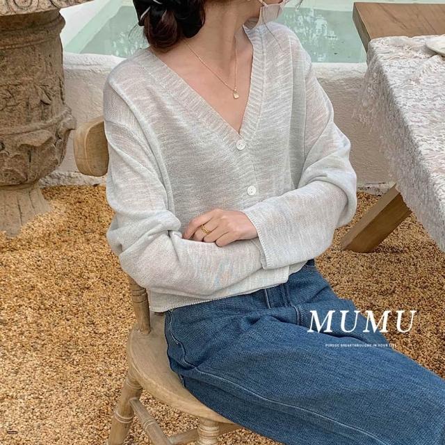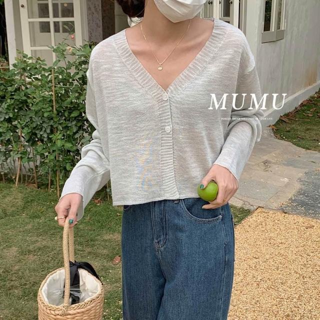MUMUSHOPMUMU C82164 MUNT現貨 小香風V領短版薄針織外套 針織 外套 寬鬆 慵懶風 針織衫 長版 保暖 長袖 女裝