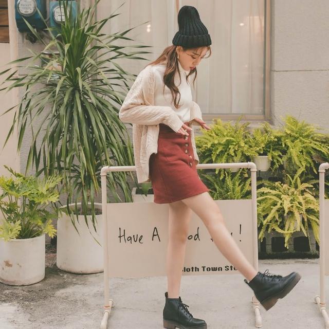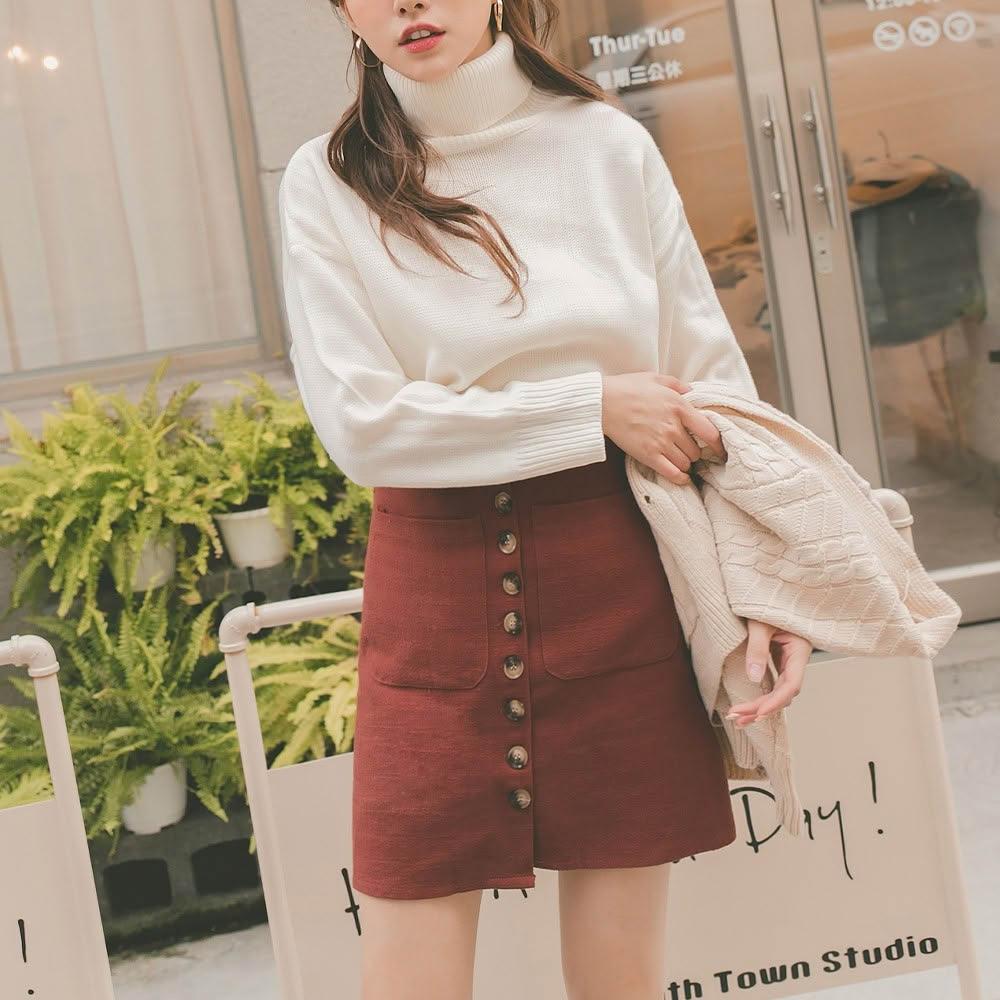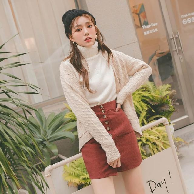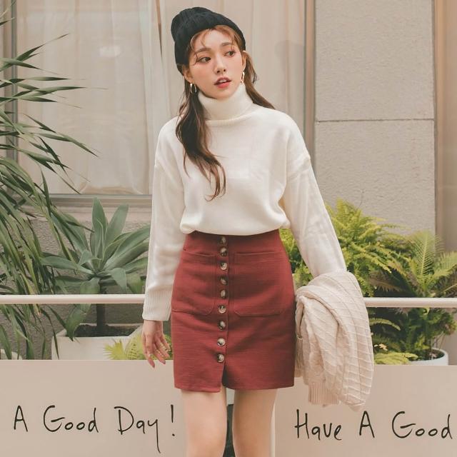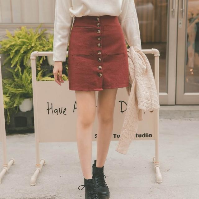 MUMUSHOPMUMU P77183 排扣 雙口袋短裙 高腰顯瘦短裙 休閒短裙 a字裙 高腰短裙 女生短裙 裙子 半身裙 短裙 純色