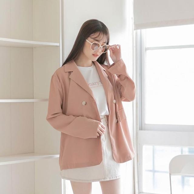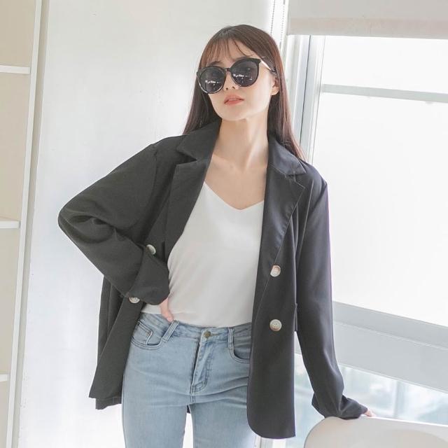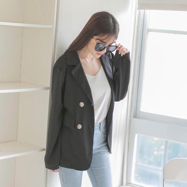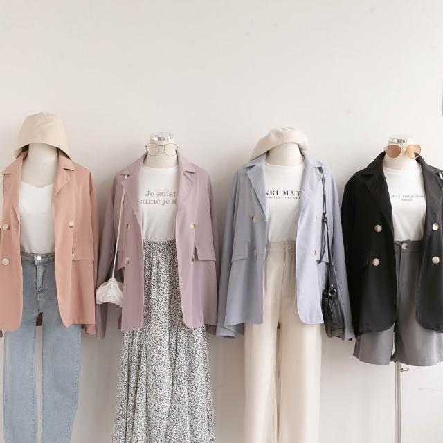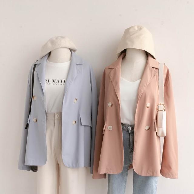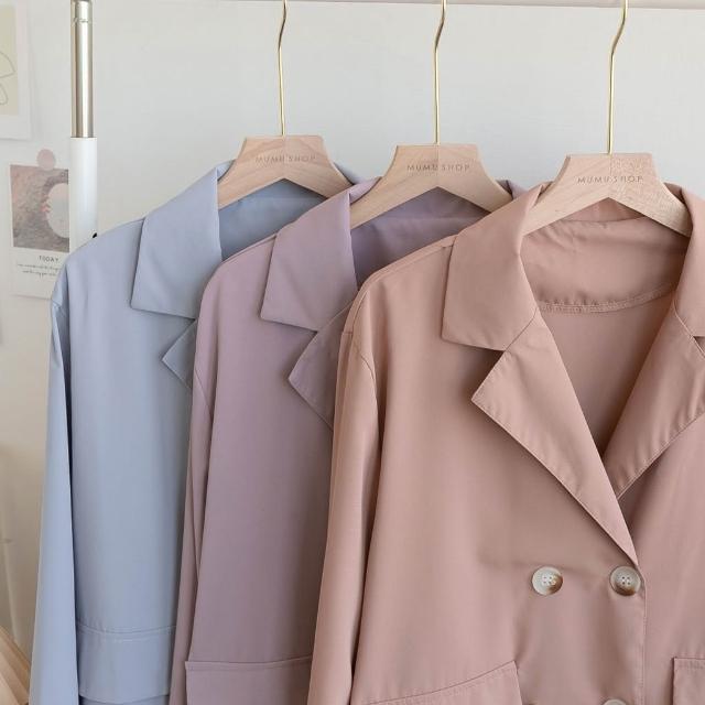 MUMUSHOPMUMU C79596 西裝外套女 雙排釦西裝外套 素色外套 上班外套 西裝外套大尺碼 休閒西裝外套 女裝