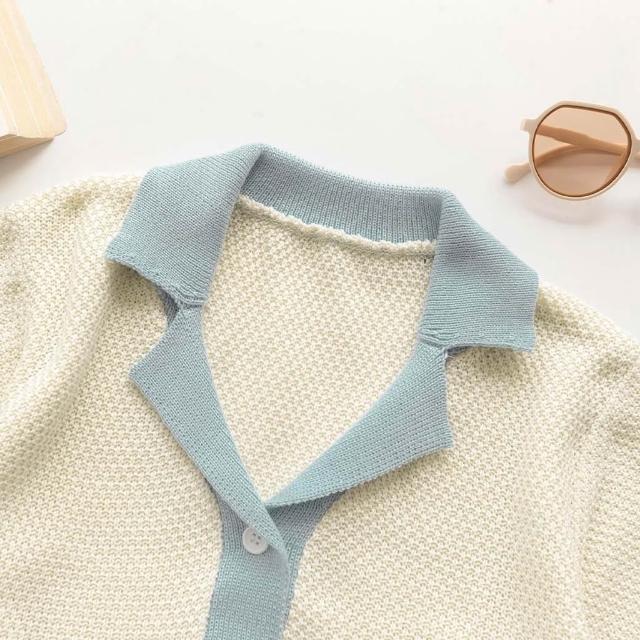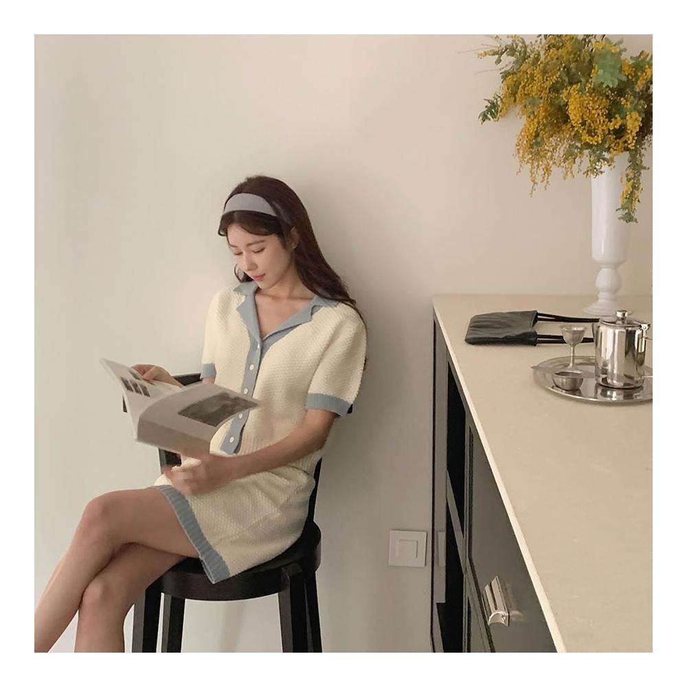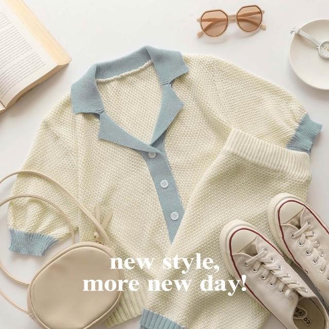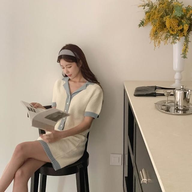 MUMUSHOPMUMU T03105 韓國同款 藍 小香風 新款 套裝 短裙 收腰 顯瘦 洋裝 質感配色 針織套裝 藍色