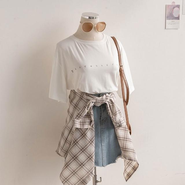 MUMUSHOPMUMU T14593 不規則下擺寬鬆短袖上衣質感 白 短袖上衣 t恤 素色外文青上衣 短袖T恤 短袖 英文TEE 圓領